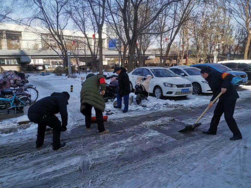 路面積雪經(jīng)過(guò)行人及車輛的踩碾及降溫結(jié)冰變得又厚又硬,給清掃工作帶來(lái)了極大困難,但集團(tuán)公司的黨員志愿者們不畏艱苦,干勁十足?;顒?dòng)中,大家分工明確、相互配合,利用鐵鍬、雪鏟等工具,有條不紊地開展積雪清理活動(dòng),重點(diǎn)對(duì)停車場(chǎng)主干道、人行通道及自行車存放處進(jìn)行了集中清理,確保了日常路面暢通和群眾出行安全。